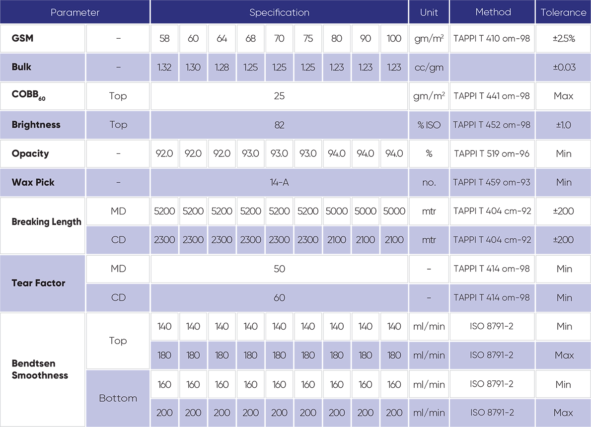 It comes with excellent optical properties, making it best quality paper among all maplitho papers in moderate brightness segment.
